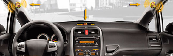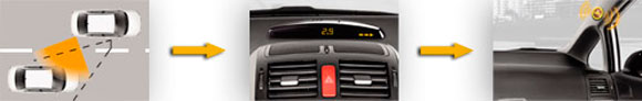Интеллектуальный алгоритм обработки информации от 4х цифровых датчиков «слепых» зон позволяет отличить потенциально опасный объект от прочих препятствий (припаркованного автомобиля, дорожных ограждений, параллельно движущихся автомобилей и т.д.)